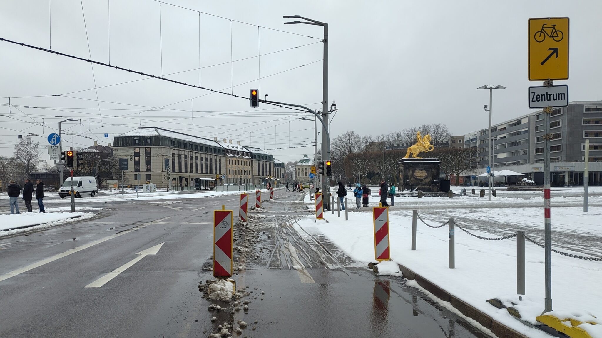 Dieser Ansatz sollte nun konsequent weitergedacht werden. Es reicht nicht, die bestehenden Baken zu entfernen und schnell eine Markierung aufzubringen. Entscheidend ist eine komfortable und sichere Anbindung für alle Personengruppen und Fahrradtypen – sowohl östlich in Richtung Wigardstraße und Albertstraße als auch westlich zur Augustusbrücke und zum Elberadweg.